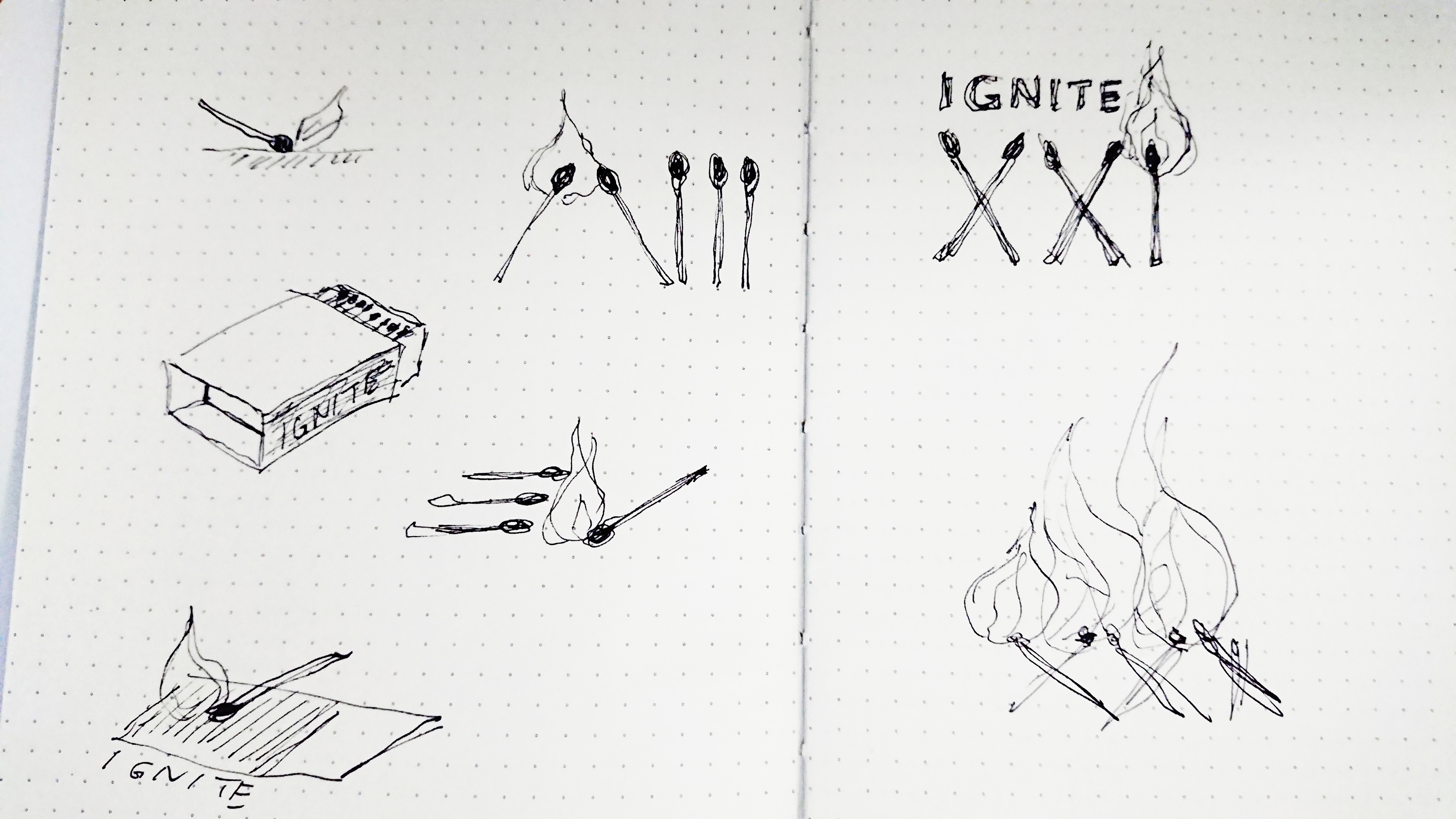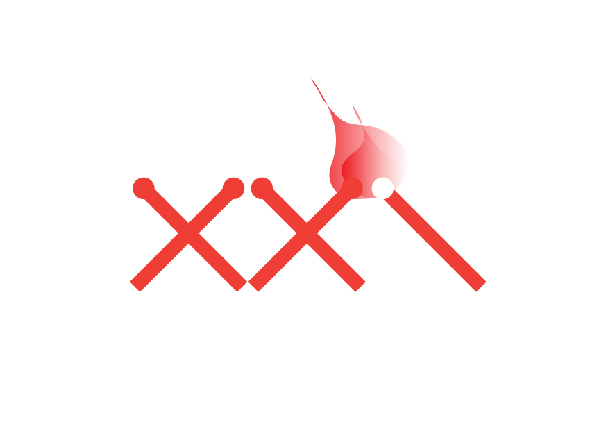 A slightly different interpretation of the logo was used as an accent to punctuate different parts of the pamphlet, such as a single matchstick shown at the moment of igniting: