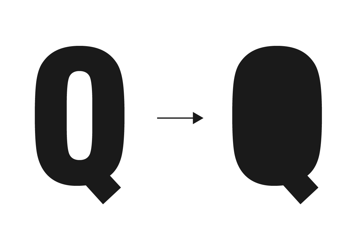 The logo was formed simply by blacking out the donut-hole of the letter ‘Q’: