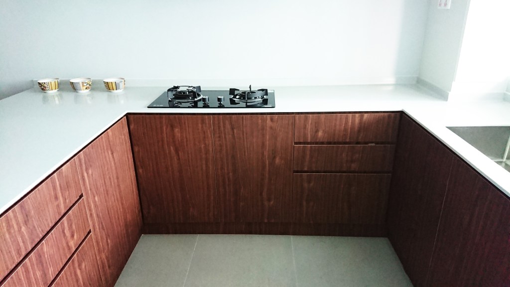 In this project, we encountered an HDB apartment that was built in the classic era of terrazzo flooring and kitchen walls tiled up to eye-level in stacked white squares. The client had a very limited budget for the renovation, but we wanted to avoid throwing our hands up and doing a regular run-of-the-mill design. Every house has its own story to tell – we thought about the ‘one thing’ that can be accentuated, one thing that can remain from its history – and honed in on the distinctive line which marks the top of the white tiles. Like a line that reaches from the past into the present, it continues a thread of existence, a poetry of belonging, in a world that changes.